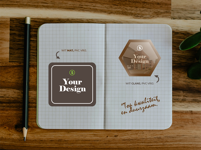 Bereken direct uw prijs en ontwerp uw sticker of upload uw bestand. Vraag offerte aanMilieuvriendelijke Stickers