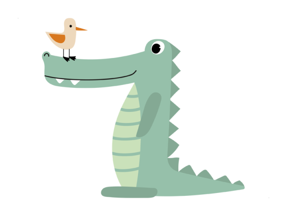 | Dit vrolijke ontwerp toont een schattige krokodil die rustig zit, terwijl een kleine vogel vrolijk op zijn snuit zit. |