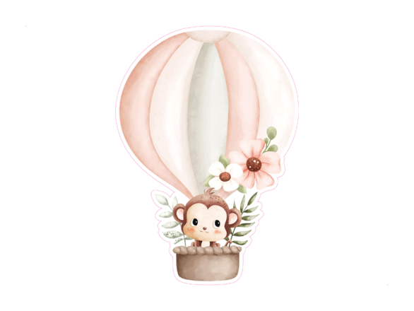 | Dit vrolijke ontwerp toont een nieuwsgierig aapje dat hoog in de lucht zweeft in een kleurrijke luchtballon. |