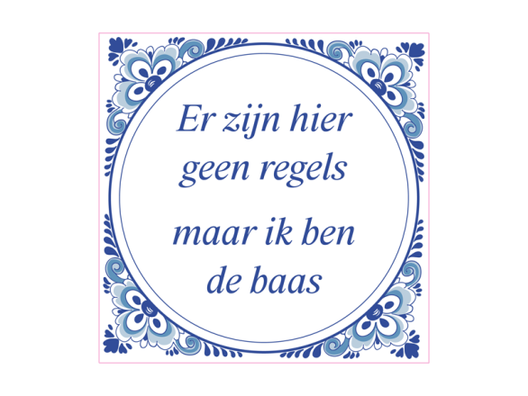 | Short Description | Er zijn hier geen regels, maar ik ben de baas |