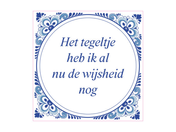 | Short Description | Het tegeltje heb ik al, nu de wijsheid nog |