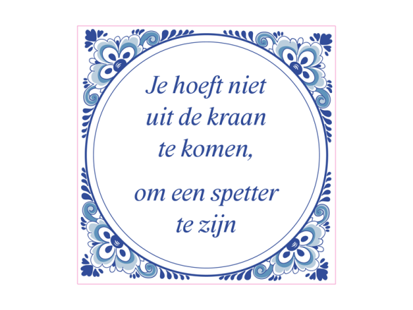 | Short Description | Je hoeft niet uit de kraan te komen, om een spetter te zijn |