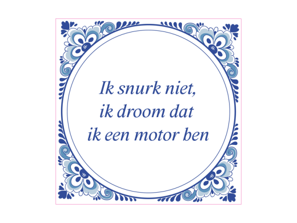 | Short Description | Ik snurk niet, ik droom dat ik een motor ben |