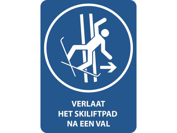 Verlaat het skiliftpad na een val, met tekst