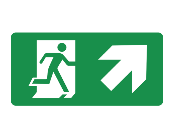 Redding nooduitgang pijl rechtsboven ronde hoeken