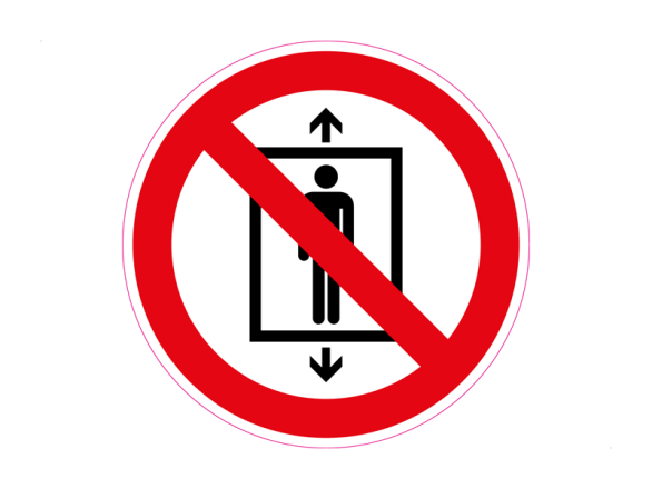 Doormiddel van deze sticker kun je op een eenvoudige manier aanduiden dat deze lift niet geschikt is voor mensen. Dit wordt weergegeven door een rond verbodsteken, waarin het pictogram is afgebeeld.