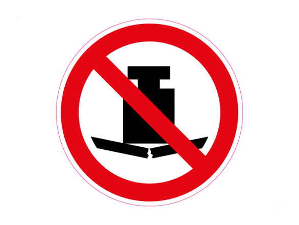 Met deze sticker geef je aan dat je geen zware lasten mag plaatsen. Dit wordt weergegeven door een rond verbodsteken, waarin het pictogram van geen zware belasting is afgebeeld.