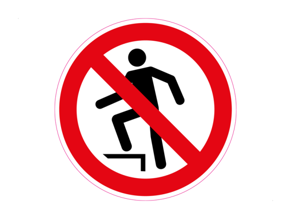 Met deze verbod sticker laat je zien dat hier niet op het oppervlak mag stappen. Dit symbool is weergegeven door een rond rood/wit verbod symbool met hierin een zwart pictogram.