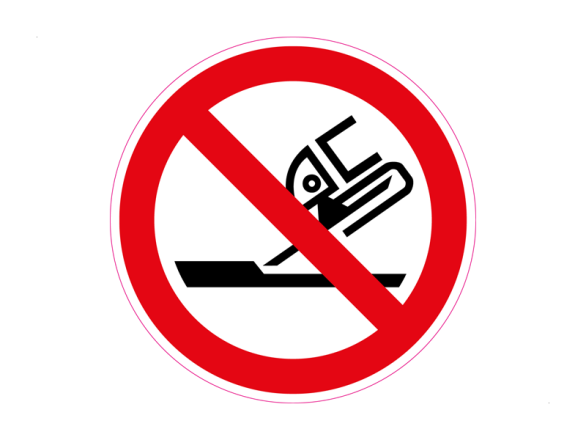 Met deze verbod sticker dat je niet vlak mag slijpen. Dit symbool is weergegeven door een rond rood/wit verbod symbool met hierin een zwart pictogram.