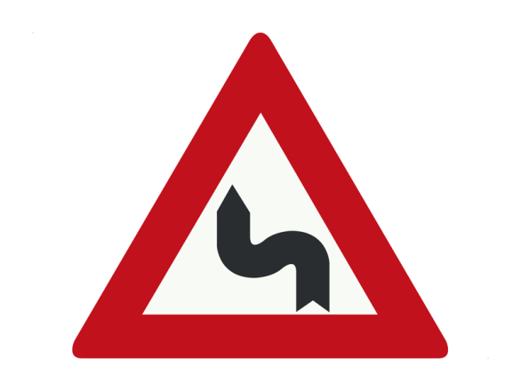 Gevaar driehoek S-bocht(en), eerst naar links