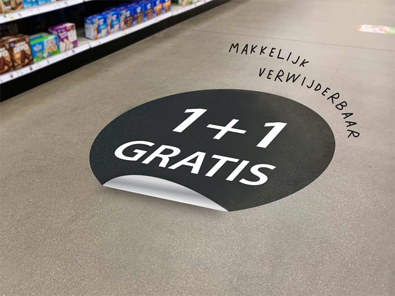 Verwijderbare vloerstickers zijn tijdelijke vloeroplossingen die je tot 6 maanden probleemloos zonder lijmresten kunt verwijderen. Ideaal voor tijdelijke acties, campagnes of markeringen.